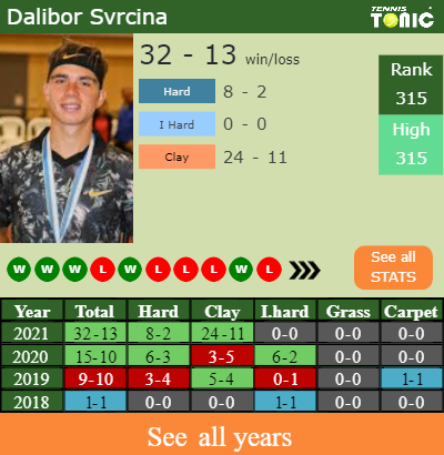 Svrcina has an overall 32-13 win-loss record in 2021, 24-11 on clay (See FULL STATS).