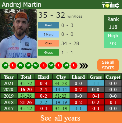 - Andrej MartinMartin – (0-0) – H2H and prediction