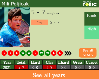 Mili has a compiled 5-7 win-loss record in 2021, 5-7 on clay (See FULL STATS).