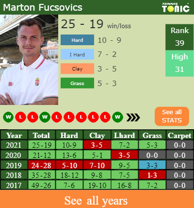 The Hungarian has an aggregate 25-19 win-loss record in 2021, 7-2 on indoor hard courts (See FULL STATS).