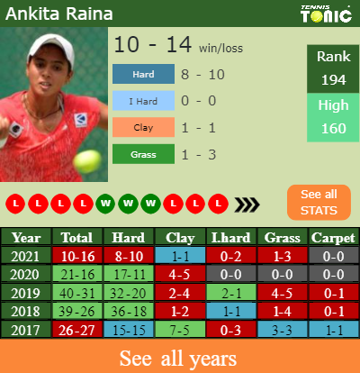 Talking about her overall career, Ankita has an overall 266-215 record. She has a negative 5-9 record on indoor hard courts.