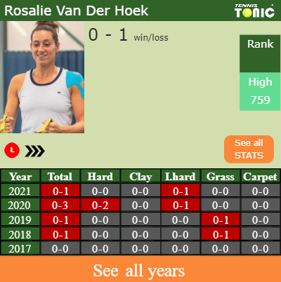 Rosalie has a compiled 0-1 win-loss record in 2021, 0-1 on indoor hard courts (See FULL STATS).