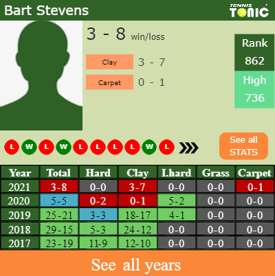 The Dutch has a compiled 3-8 win-loss record in 2021, 3-7 on clay (See FULL STATS).