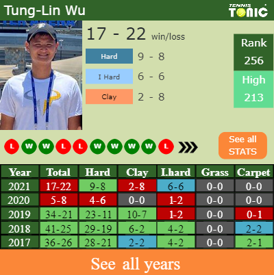 Tung-Lin has an aggregate 17-22 win-loss record in 2021, 9-8 on hard (See FULL STATS).