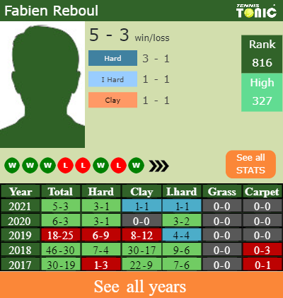 The French player has an overall 5-3 win-loss record in 2021, 1-1 on indoor hard courts (See FULL STATS).