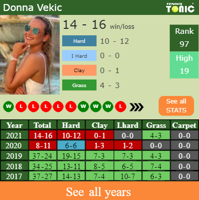 Talking about her overall career, Donna has an overall 306-226 record. She has a positive 40-36 record on indoor hard courts.