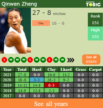 The Chinese has an overall 27-8 win-loss record in 2021, 11-2 on indoor hard courts (See FULL STATS).