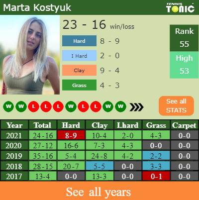 Kostyuk’s best result of the current season was getting to the semifinal in Abu Dhabi and Istanbul.