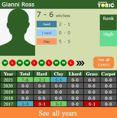 Gianni has an overall 7-6 win-loss record in 2021, 0-0 on indoor hard courts (See FULL STATS).
