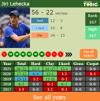 Jiri has a compiled 56-22 win-loss record in 2021, 10-4 on indoor hard courts (See FULL STATS).