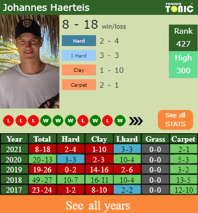 Johannes has an overall 8-18 win-loss record in 2021, 2-1 on carpet (See FULL STATS).