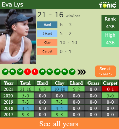 Lys has a compiled 21-16 win-loss record in 2021, 5-2 on indoor hard courts (See FULL STATS).