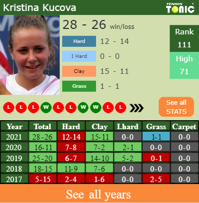 Kucova has an overall 28-26 win-loss record in 2021, 0-0 on indoor hard courts (See FULL STATS).