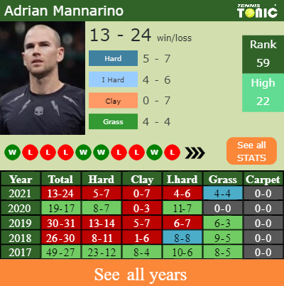 The French player has a composed 13-24 win-loss record in 2021, 4-6 on indoor hard courts (See FULL STATS).