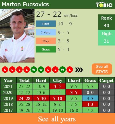The Hungarian has a composed 27-22 win-loss record in 2021, 9-5 on indoor hard courts (See FULL STATS).