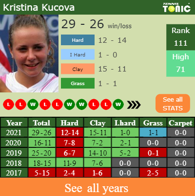The Slovakian has an overall 29-26 win-loss record in 2021, 1-0 on indoor hard courts (See FULL STATS).