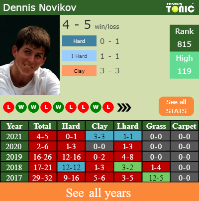 In terms of his career, Novikov has an overall 240-230 record. He has a negative 28-37 record on indoor hard courts.