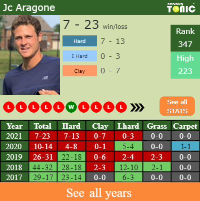 Aragone has an aggregate 7-23 win-loss record in 2021, 0-3 on indoor hard courts (See FULL STATS).