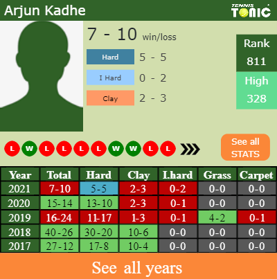 Kadhe has an aggregate 7-10 win-loss record in 2021, 0-2 on indoor hard courts (See FULL STATS).