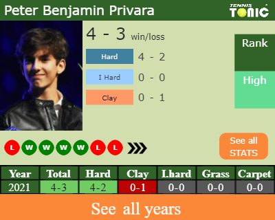 Talking about his overall career, Benjamin Privara has an overall 4-3 record. He has a flat 0-0 record on indoor hard courts.