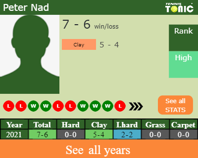 Currently unranked, Nad will start his run in the Bratislava Challenger after he played his last match in M15 Zilina where he lost 7-6(0) 6-2 to Velcz in the 2nd round on the 2nd of September.