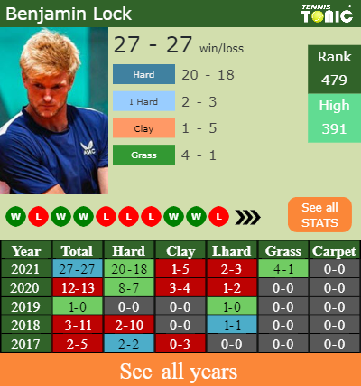 In terms of his career, Lock has an overall 62-68 record. He has a negative 6-7 record on indoor hard courts.