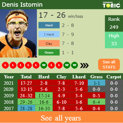 - Denis IstominIstomin – Filip KrajinovicKrajinovic (0-1) – H2H and prediction