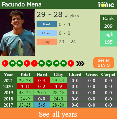 In terms of his career, Mena has an overall 343-243 record. He has a positive 295-206 record on clay.