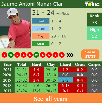 Jaume Antoni has a compiled 31-24 win-loss record in 2021, 29-16 on clay (See FULL STATS).