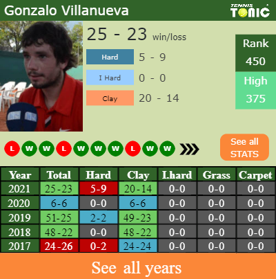 Villanueva’s best result of the current season was reaching the semifinal in M25 Naples and M15 Weston.