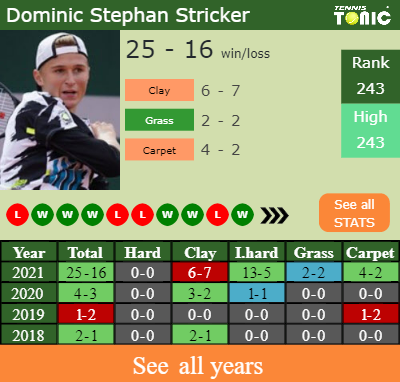 Stephan has an overall 25-16 win-loss record in 2021, 13-5 on indoor hard courts (See FULL STATS).