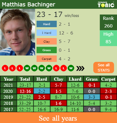The German has an overall 23-17 win-loss record in 2021, 12-6 on indoor hard courts (See FULL STATS).