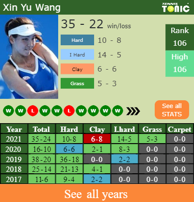 The Chinese has a composed 35-24 win-loss record in 2021, 14-5 on indoor hard courts (See FULL STATS).