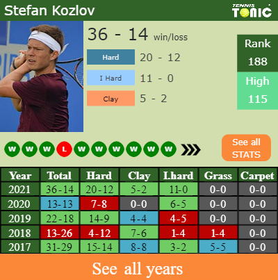 Kozlov has a good match record in the last 10 years having won 59% of his matches (272-191). 11-0 on indoor hard courts in 2021. Regarding his performance on the same surface of this tournament, Kozlov has a compiled 58-31 match record in the last years on indoor hard courts.