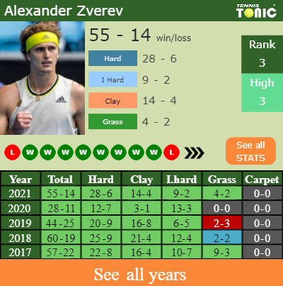This will be the 5th time that Alexander Zverev and Matteo Berrettini play each other. The head to head is 3-1 for Zverev (see full H2H stats), but they have never played each other on indoor hard courts.