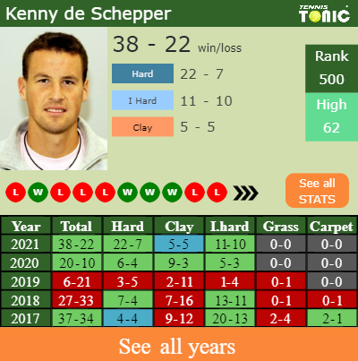 In terms of his career, De Schepper has an overall 375-304 record. He has a positive 170-112 record on indoor hard courts.
