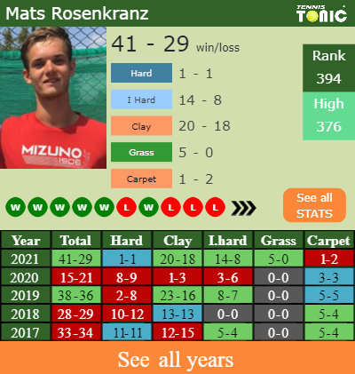 Mats has a compiled 41-29 win-loss record in 2021, 14-8 on indoor hard courts (See FULL STATS).