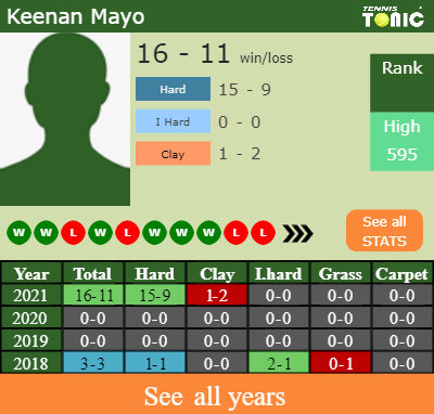 Mayo has a compiled 16-11 win-loss record in 2021, 0-0 on indoor hard courts (See FULL STATS).