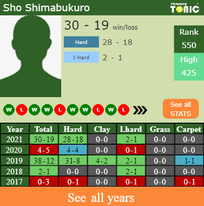 Shimabukuro has an overall 30-19 win-loss record in 2021, 2-1 on indoor hard courts (See FULL STATS).