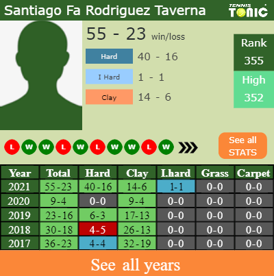 Fa Rodriguez Taverna has an aggregate 55-23 win-loss record in 2021, 14-6 on clay (See FULL STATS).