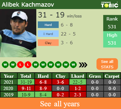 Alibek has a composed 31-19 win-loss record in 2021, 22-5 on indoor hard courts (See FULL STATS).