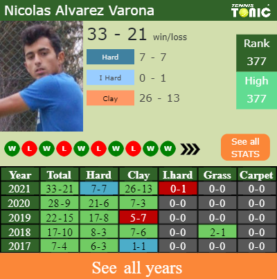 Alvarez has a composed 33-21 win-loss record in 2021, 26-13 on clay (See FULL STATS).