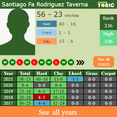 Fa Rodriguez Taverna has an overall 56-23 win-loss record in 2021, 15-6 on clay (See FULL STATS).