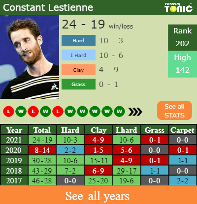 See updated oddsAs per the initial odds, Constant Lestienne is the pick to win this match.