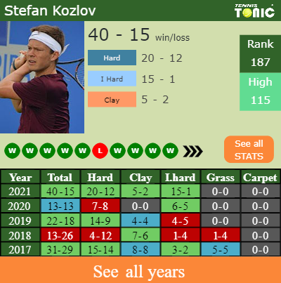 Stefan has a composed 40-15 win-loss record in 2021, 15-1 on indoor hard courts (See FULL STATS).