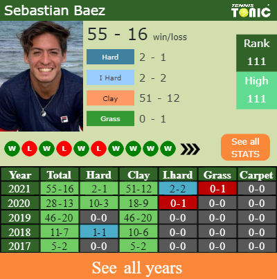 Sebastian has a composed 55-16 win-loss record in 2021, 51-12 on clay (See FULL STATS).