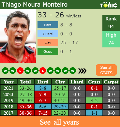 Moura Monteiro has a compiled 33-26 win-loss record in 2021, 25-17 on clay (See FULL STATS).