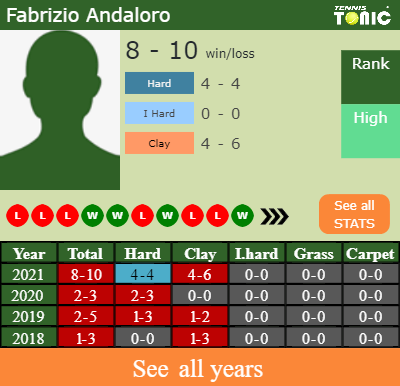 Andaloro has a composed 8-10 win-loss record in 2021, 4-4 on hard (See FULL STATS).