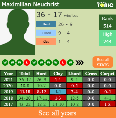 Neuchrist has a composed 36-17 win-loss record in 2021, 26-9 on hard (See FULL STATS).