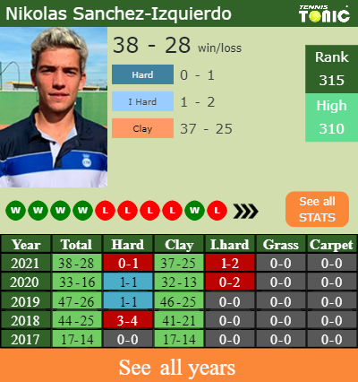 The last time that they fought against each other, Sanchez-Izquierdo won 6-2 7-6(3) in the qualifications in the Zadar Challenger back in March 2021.